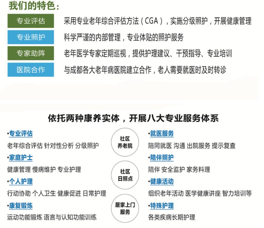 成都怡倍康養(yǎng)老服務(wù)有限公司是一家按照“康養(yǎng)結(jié)合”模式運(yùn)營的專業(yè)化養(yǎng)老機(jī)構(gòu)。我們與四川大學(xué)華西醫(yī)院老年醫(yī)學(xué)中心合作,專注于社區(qū)養(yǎng)老,并在實(shí)踐中堅(jiān)持關(guān)注老年人身心健康。